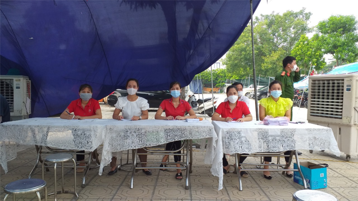 Trong những ngày giữa tháng 9 này, toàn thành phố Hà Nội đang gấp rút ngăn chặn, đẩy lùi các ca nhiễm bệnh để phục hồi sản xuất và tiến tới giai đoạn bình thường mới. Do vậy mỗi địa phương đều đang dốc toàn lực cho công tác tiêm phòng và xét nghiệm, nhằm sàng lọc các ca F0 ra khỏi cộng đồng. Với chỉ tiêu tiêm phòng toàn dân, những ngày nay, xã Ninh Hiệp huy động toàn bộ lực lượng, từ lãnh đạo địa phương, lực lượng công an, tổ Covid cộng đồng, cho đến giáo viên, đoàn thanh niên...tham gia công tác chống dịch. Góp sức với các lực lượng chống dịch của xã, tập thể cán bộ, giáo viên nhân viên của nhà trường cũng tham gia hỗ trợ. Với số lượng tiêm và lấy mẫu xét nghiệm trên 7000 người/ ngày, các CBGVNV nhà trường đã có mặt từ 6h30 hàng ngày, túc trực bên bàn ghi giấy, phối kết hợp với các lực lượng khác tuyên truyền, hướng dẫn người dân lấy mẫu và tiêm, thời gian kết thúc thường từ 20h - 21h hàng ngày.