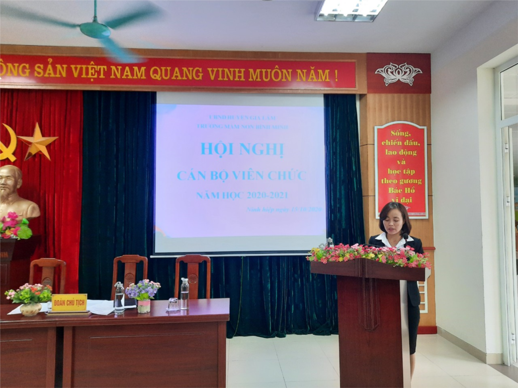 Sáng nay, 15 tháng 10 năm 2020, trường MN Bình Minh đã tổ chức hội nghị Cán bộ Viên chức năm học 2020-2021. Về dự hội nghị có hơn 50 CB GV NV nhà trường.